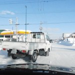 それを、慎重に軽トラへ(軽トラアイス)。この日は天気が良く、ガラスのようにキレイです。