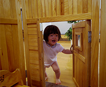 しきりに木のボールを敷き詰めている。「何してるの?」と尋ねた私に、