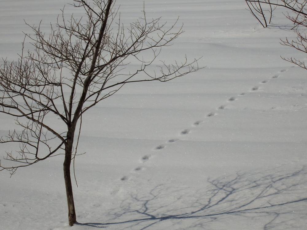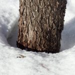春が近づくと木の体温(木温と呼ぶことも☚辞書にはない)で幹の周囲だけ雪が解ける。