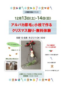 12月13日と14日の2日間。先着10名様。体験料は無料。手ぶらでOK
