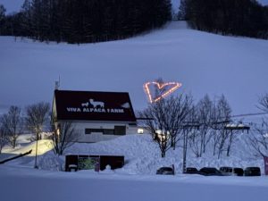 牧場ロッジ前も、ステキになりました。来年のバレンタインは日曜日、もっと多くの人とあかりを灯したいですね。